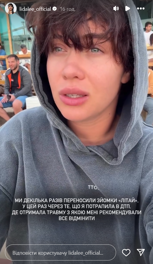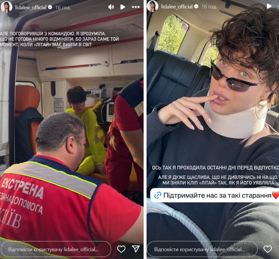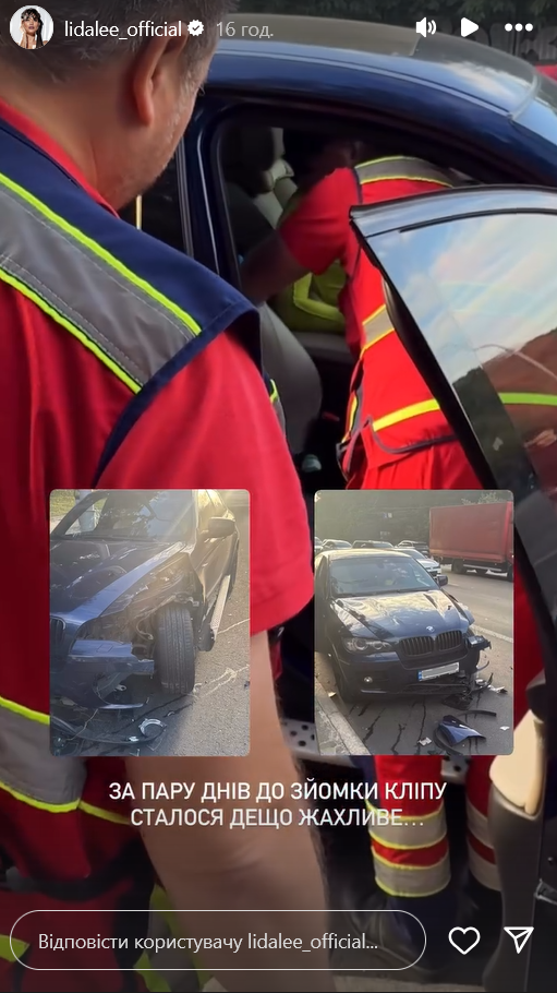 Певица Lida Lee пережила автомобильную аварию, во время которой разбила свою машину и получила травму. ДТП произошло накануне съемок ее нового клипа на песню "Літай".