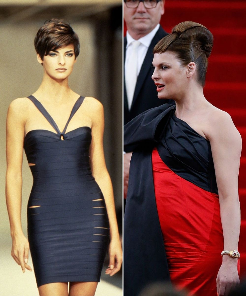 Линда Евангелиста в 1990-м и 2015 году