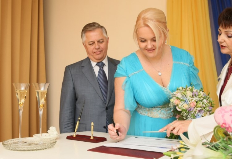 Петр Симоненко и Оксана Ващенко во время церемонии бракосочетания, в Киеве, 26 сентября 2009 года