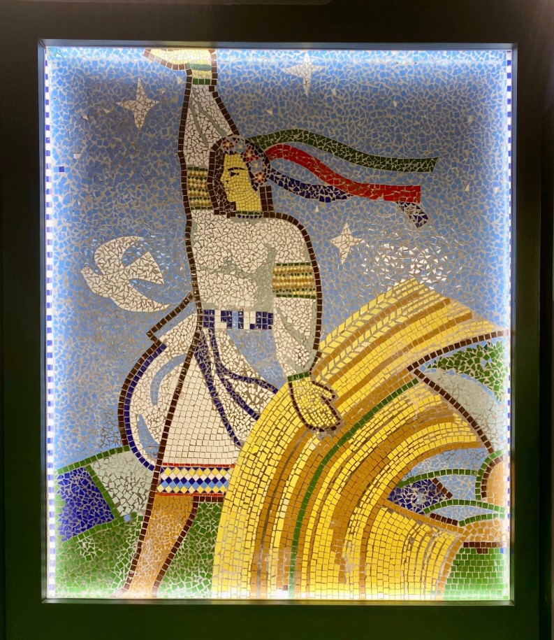 Увидеть мозаику можно у бакалейного отдела магазина.