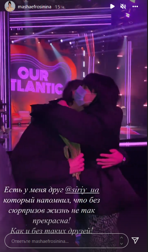 "Есть у меня друг, который напомнил, что без сюрпризов жизнь не так прекрасна! Как и без таких друзей!, - поделилась Ефросинина. - Сергей Притула появился неожиданно с цветами, чтобы передать мне эстафету ведения Национального отбора на Евровидение! Я растерялась так, что все начало сыпаться из рук".
