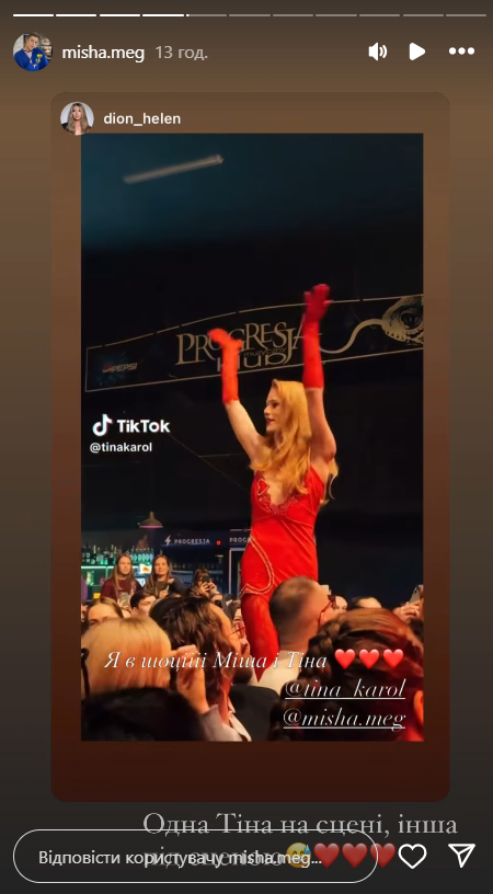 "Миша, спасибо тебе. Это меня сегодня поразило максимально", - сказала Тина Кароль.