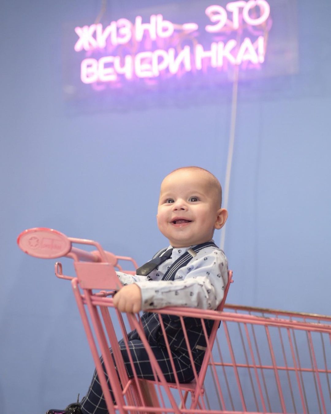 Фотографиями с праздника пара поделилась в Instagram. Молодая мама показала улыбчивого Михасика, которого нарядила "по-взрослому", и написала, что радуется тому, что ее сына с детства окружают любящие люди.