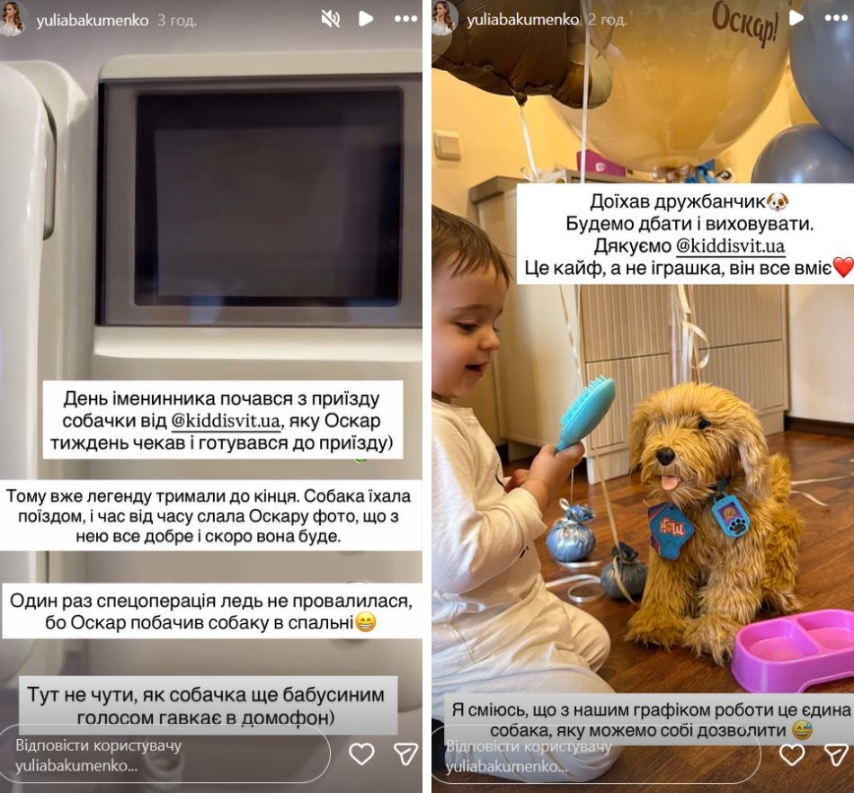 Между тем, Юлия на своей странице показала первое фото Оскара из роддома и раскрыла подарок на двухлетие - интерактивную игрушку лабрадудль Moji.