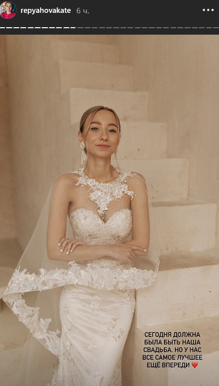 "Сегодня должна была быть наша свадьба. Но у нас все самое лучшее еще впереди", - написала Репяхова. Правда, она не уточнила, перенесли они торжество или отменили вовсе.