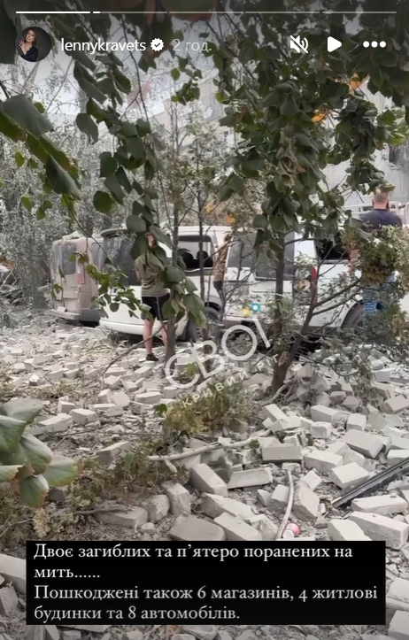 Она также показала видео с разрушениями от российского удара. Комментирует: "Мой город железный, держись за нас, родной!".