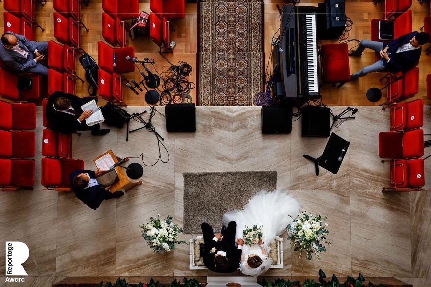 Пандемия коронавируса нарушила планы многих влюбленных, собиравшихся сыграть свадьбу в 2020 году. Однако некоторые пары решили не переносить даты церемоний, и устроить праздник любви не взирая ни на что. Трогательные моменты снимали фотографы со всех уголков планеты и отправляли их на конкурс This is Reportage Award.
