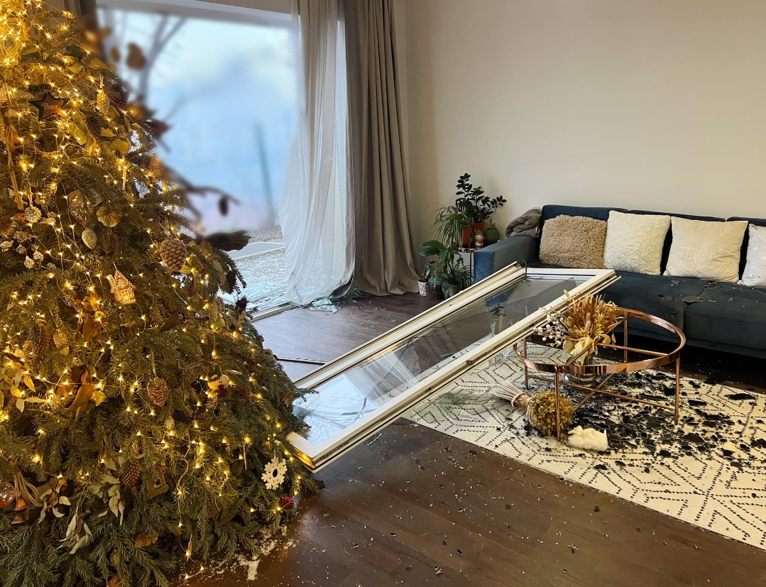 "Сегодня случился мой личный фильм ужасов. Взрывной волной накрыло мой дом. Осколки – повсюду. Окон больше нет. Поврежден фасад. Домашний уют заменил запах дыма и ада, который несет Россия. Лучшая новость – мы нашли мою Мишель (кошка Рудык). Спасибо всем, кто помогает и заботится", - написала женщина на своей странице в Facebook, а также обнародовала фото разрушений. В частности, на опубликованных кадрах можно увидеть выбитые панорамные окна, много разбитого стекла на полу и террасе в результате удара.
