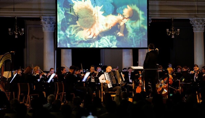 Игра музыкантов на фоне видеоряда, который художник Николай Карабинович создал специально для этой симфонической поэмы