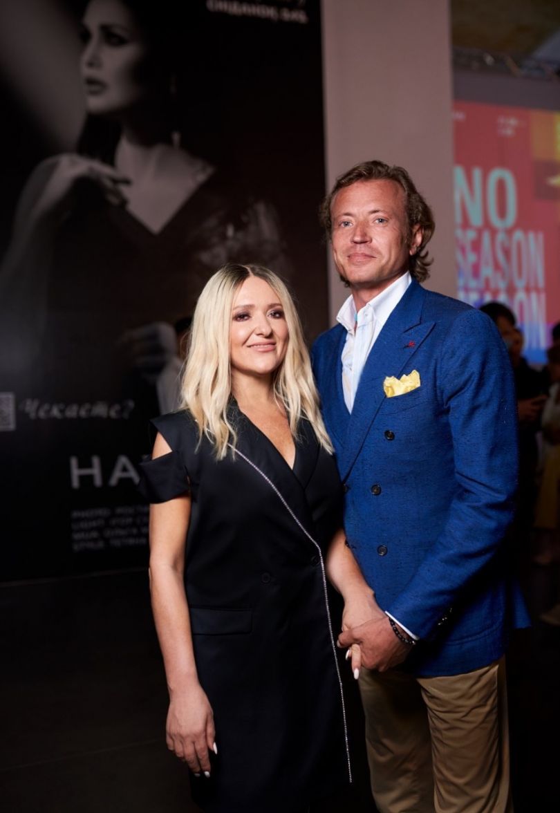 "Мы пришли поддержать украинских дизайнеров и вдохновиться. Я одета в украинский бренд своей подруги, он называется Fukel, почти как любовник, если поменять последнюю букву L на R. Наряд для меня выбирал не Олег, он любит меня в платьях. Я просто хулиганила", - поделилась Могилевская.