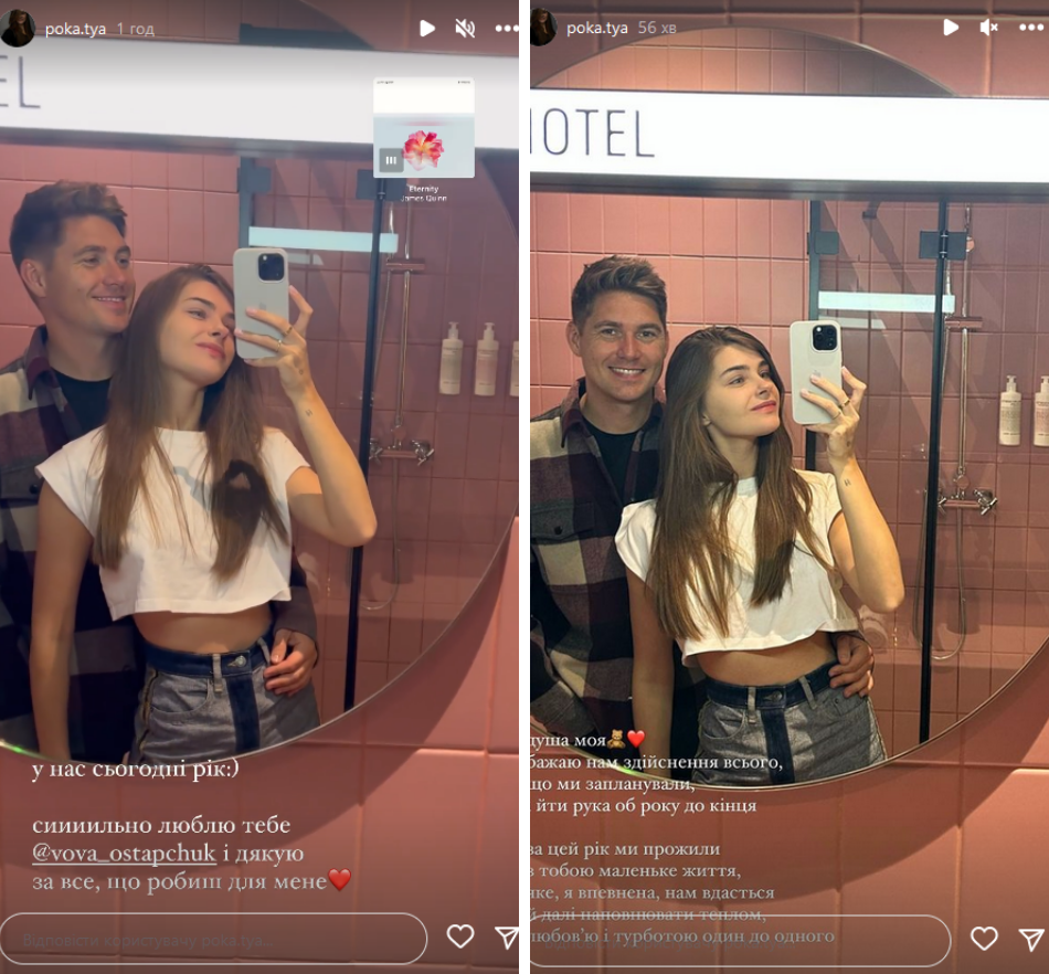 "Коть, нам сегодня 1 год. Спасибо, что научила меня снова верить в людей и в себя. Спасибо, что своим примером показываешь: собственные ценности нужно защищать. Спасибо, что готова бежать, ждать, держать, любить что угодно. Спасибо за твой юмор и отношение к миру. Спасибо за твою красоту и перфектность твоей души. Я тебя люблю и поздравляю с нами", - загадочно написал Остапчук.