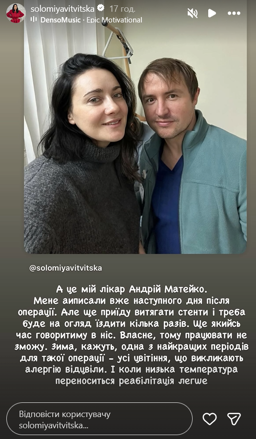 На своей странице в Instagram ведущая новостей показала фото из больницы после хирургического вмешательства, которое ей сделали из-за существенного искривления носовой перегородки. В посте 45-летняя Соломия рассказала о многолетних проблемах с дыханием и обратилась к украинцам с подобными симптомами с призывом не откладывать лечение.