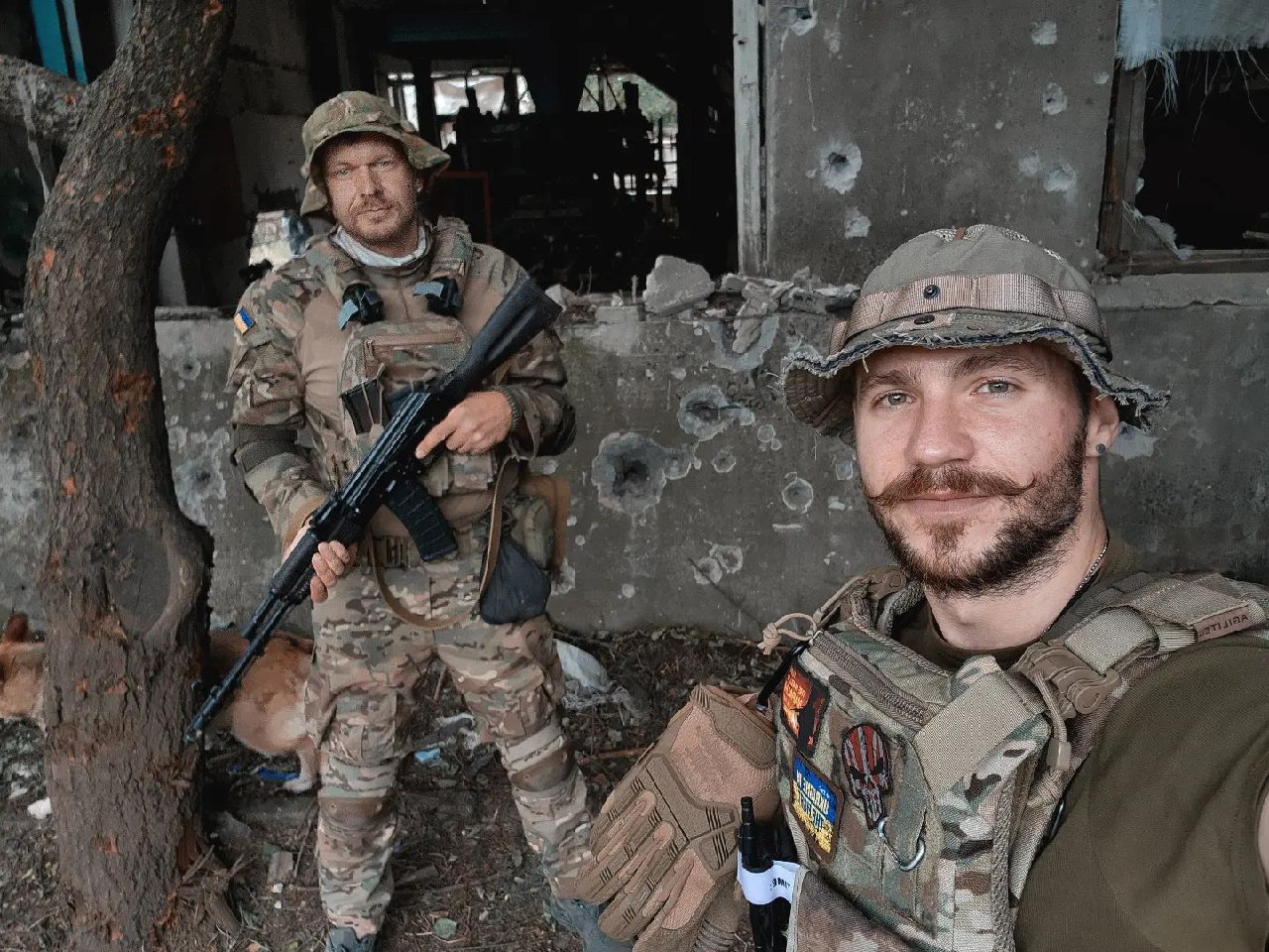 Маркус опубликовал фото, на котором запечатлен вместе с Положинским на фоне разрушенного обстрелами здания.