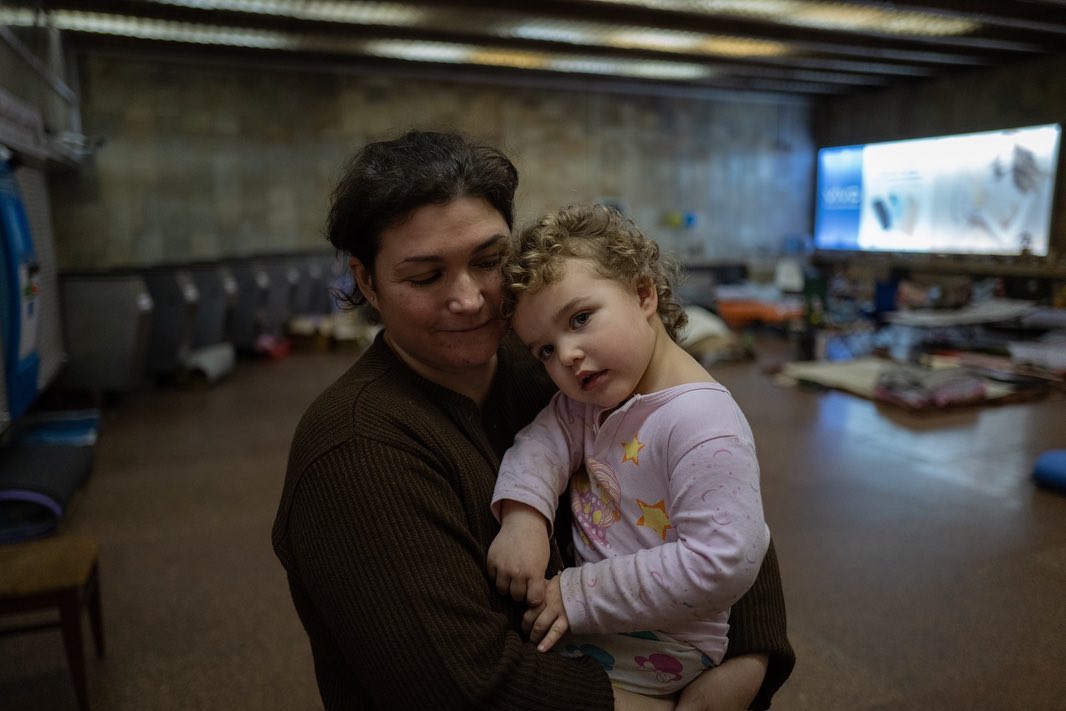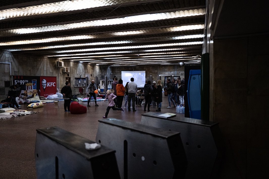 "На станции метро Героев Днепра Оболонского района Киева до сих пор живут сотни людей, многие из них дети. Несмотря на отступление России, большинство опасается мстительных атак со стороны России, а сирены воздушной тревоги все еще звучат всю ночь", - написал режиссер в Instagram.