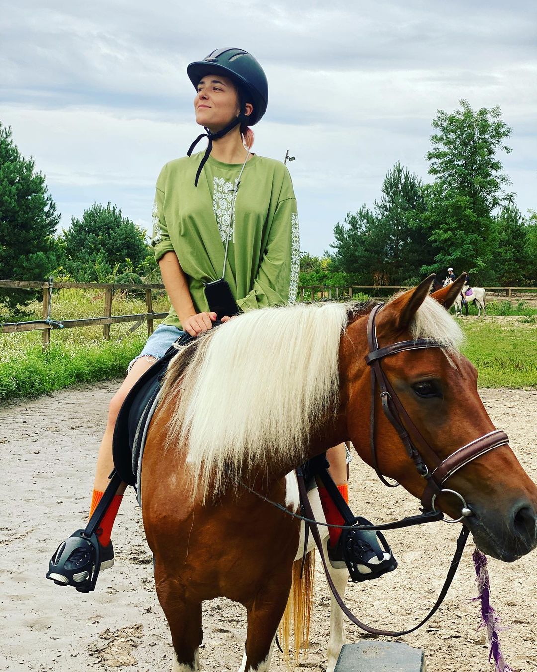 На своей странице в Instagram артистка обнародовала серию фото, сделанных во время семейной прогулки. Вместе с дочками – Ульяной и Ниной – и мужем, певцом Аресом Мирзояном, Матвиенко уже успела покататься на лошадях.