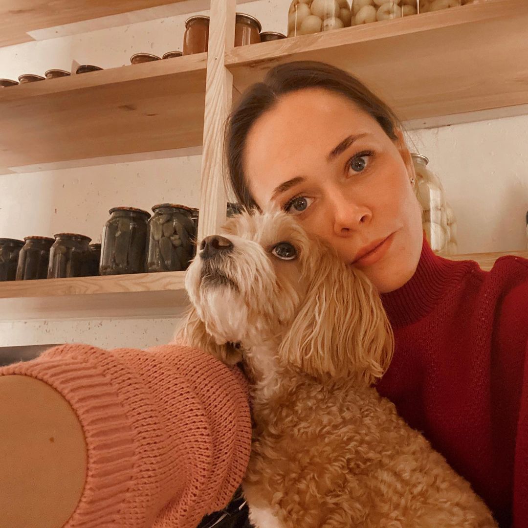 "Киев. Воздушная тревога. Подвал. Огурцы. Собака-антистресс", - написала артистка в описании к снимку, на котором позировала вместе со своим домашним любимцем.