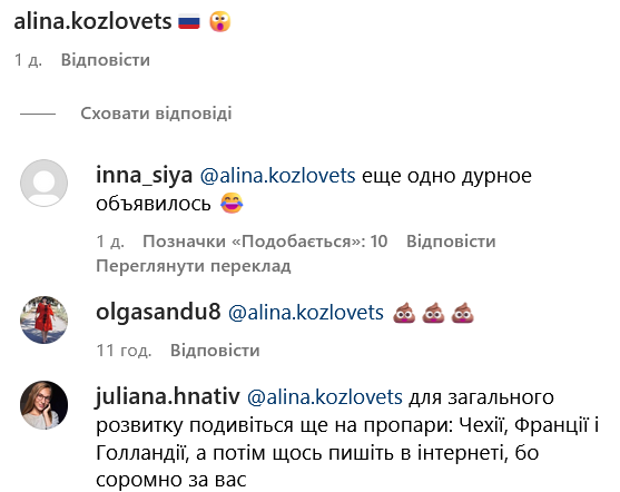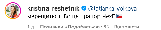 "Мне мерещится, или там есть фото на фоне трехцветной тряпки?", - прокомментировала подписчица. "Мерещится! Потому что это флаг Чехии", - ответила ей Кристина Решетник.