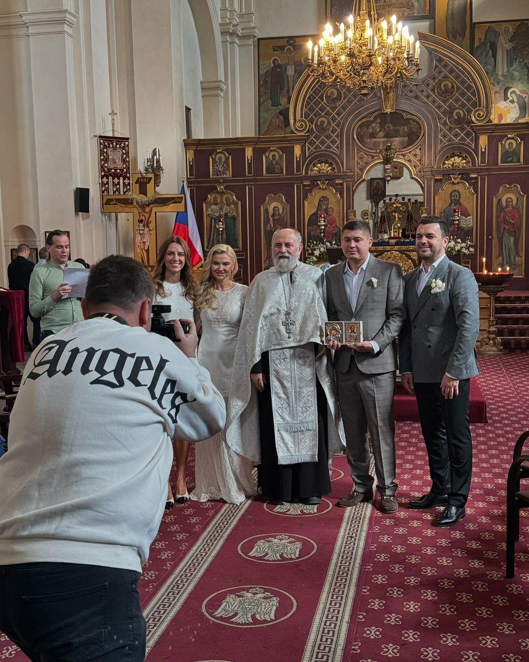 На Instagram-страницах ведущего шоу "Холостяк" и его жены появились кадры из церкви в Праге, где накануне состоялось венчание друзей пары. Григорий и Кристина стали венчальными родителями.