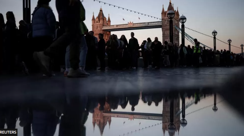 На берегах Темзы в Лондоне выстроились огромные очереди, в которых люди ждут, чтобы засвидетельствовать свое почтение королеве Елизавете ІІ. Учередь упирается в Вестминстерский дворец, где выставлен гроб с телом королевы. Прощание продлится до 18 сентября, а похороны запланированы на понедельник, 19 сентября.