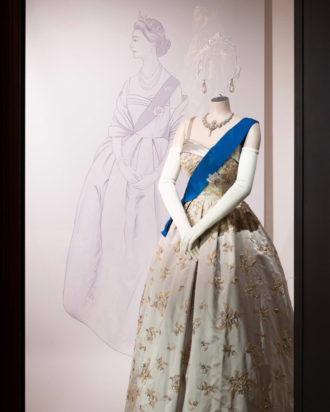 Кроме одежды, украшений, шляп, обуви и аксессуаров, посетителям предлагают эскизы дизайнов, образцы тканей и рукописную переписку, которые раскрывают закулисный процесс создания образов Ее Величества.