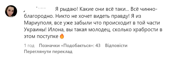 В комментариях люди поддерживают Илону Чернобай и благодарят ее за яркий протест: