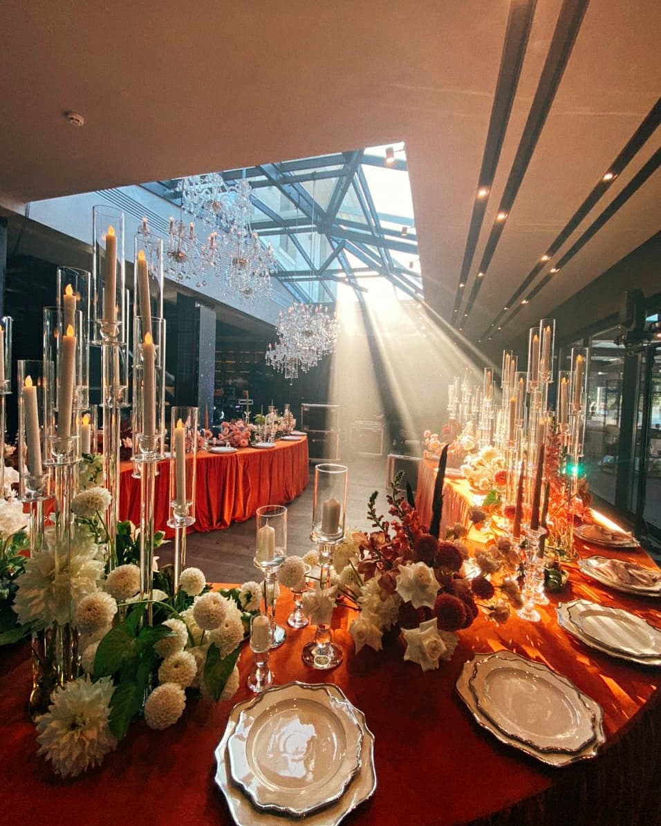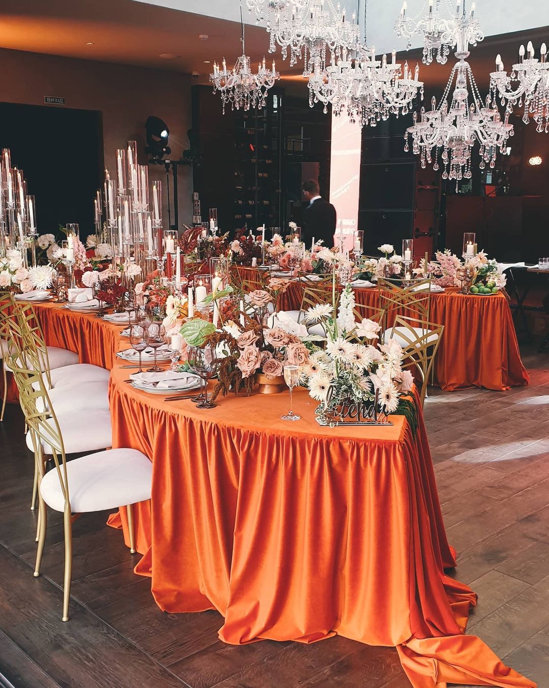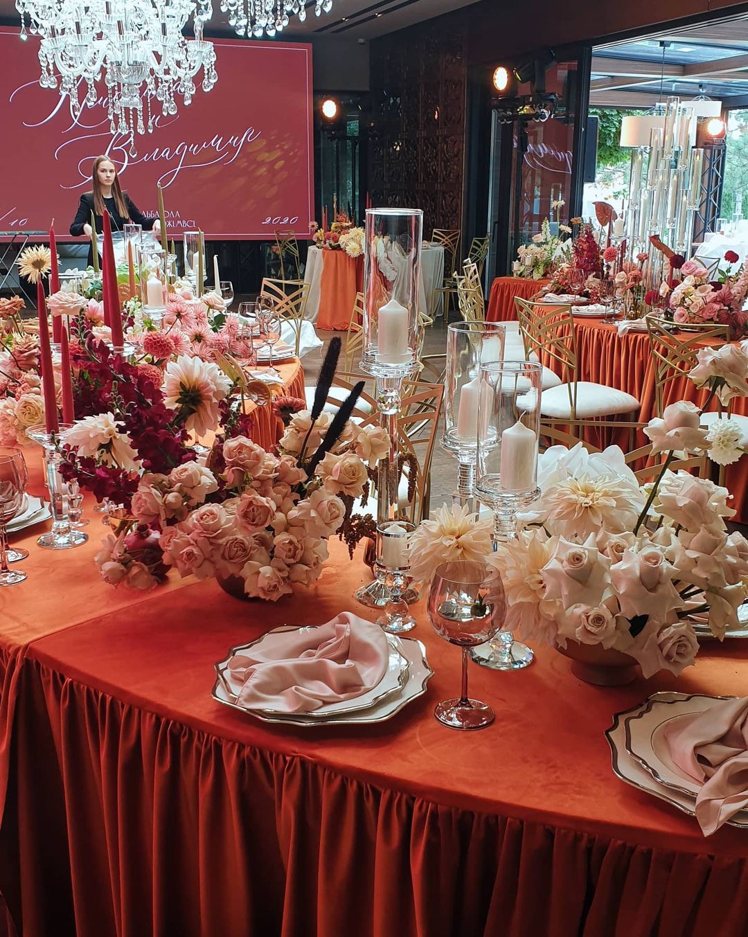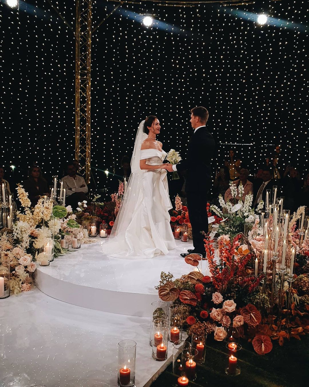 Организатор церемонии показала в Instagram, каким был свадебный декор и место, где влюбленные обменялись супружескими клятвами. Особым акцентом торжества стала флористика в осенних тонах, а также множество свечей и огоньков, которые были зажжены во время вечерней церемонии.