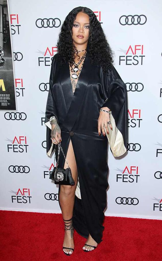 Отметим, что и черный цвет, который в принципе должен стройнить, не всегда в нарядах Рианны выполняет свою функцию, а иногда даже наоборот. Так, например, как получилось с платьями ниже.