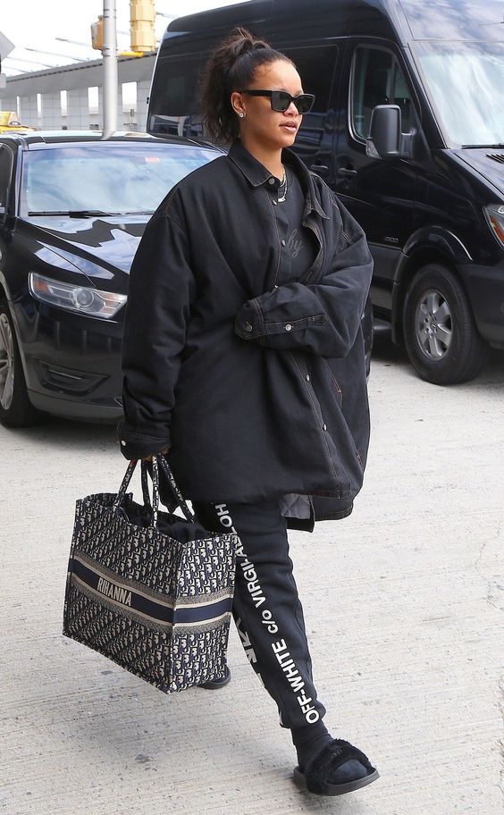 Популярный нынче стиль оверсайз - один из самых любимых в луках Рианны. Однако массивной одеждой певица, которая несколько лет назад сильно поправилась, еще больше подчеркивает свою полноту. Впрочем, иногда каждой женщине просто хочется одеться комфортно, а не щеголять в обтягивающей юбке и туфлях на шпильке.