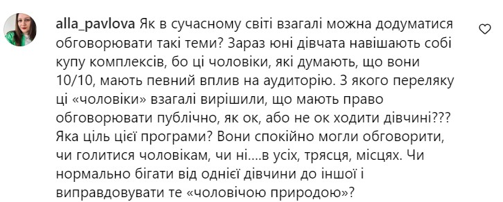 Слова мужчин многим показались оскорбительными, особенно учитывая количество женщин, которые сегодня защищают Украину, спасают раненых или живут под постоянными обстрелами. Правозащитная организация Gender Zed даже посвятила этому отдельный пост. Остапчука, Позитива и Буше обвинили в насаждении гендерных стереотипов, устаревших и вредных представлений о женском теле.