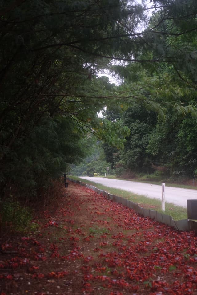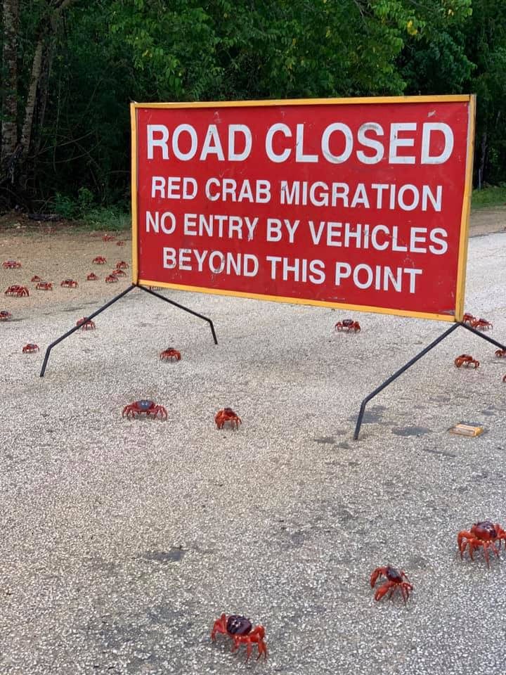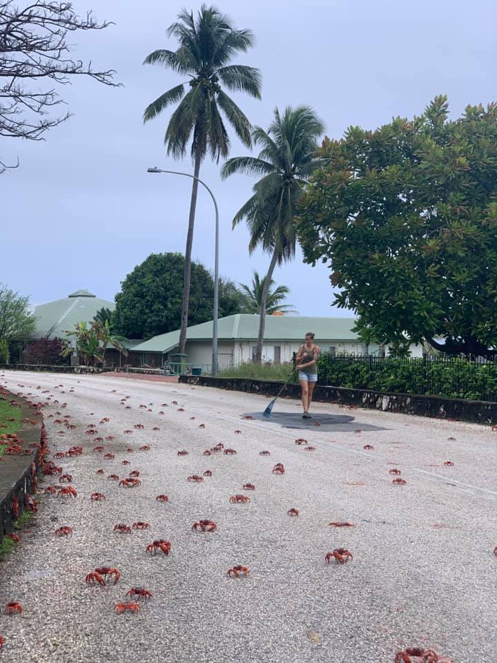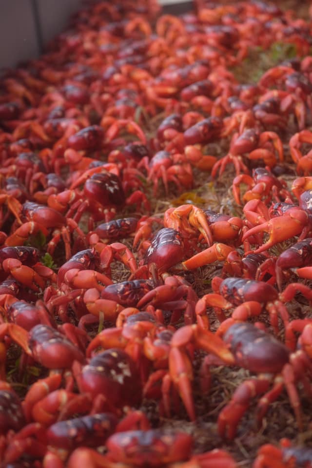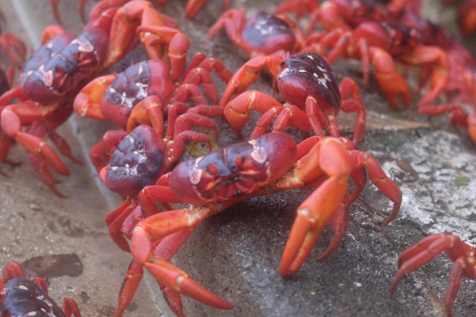Путешествие членистоногих происходит в ноябре-декабре и в среднем занимает 18 дней. В это время остров буквально краснеет, а власти перекрывают автомагистрали, чтобы не подвергать крабов опасности. Также для них открывают временные мосты, а рабочие и волонтеры помогают застрявшим путешественникам преодолевать препятствия и сгребают их с асфальта.