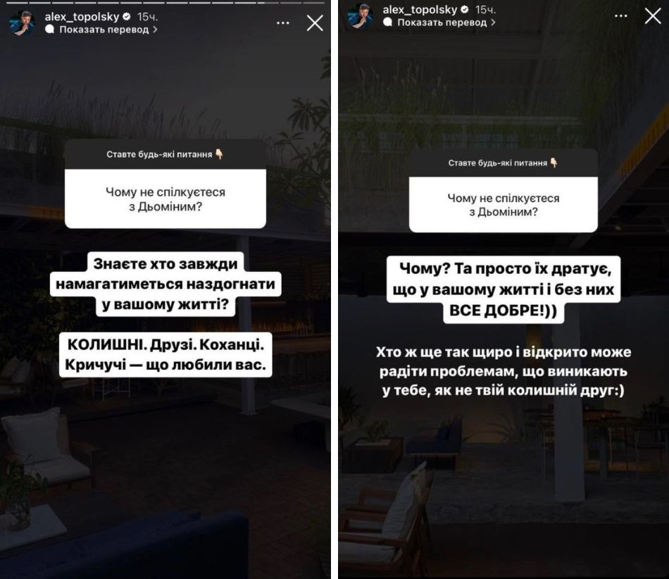 Топольский не стал отмалчиваться по поводу ссоры. В Instagram-историях он заявил, что Демин радовался его проблемам, а успехи друга его раздражали.