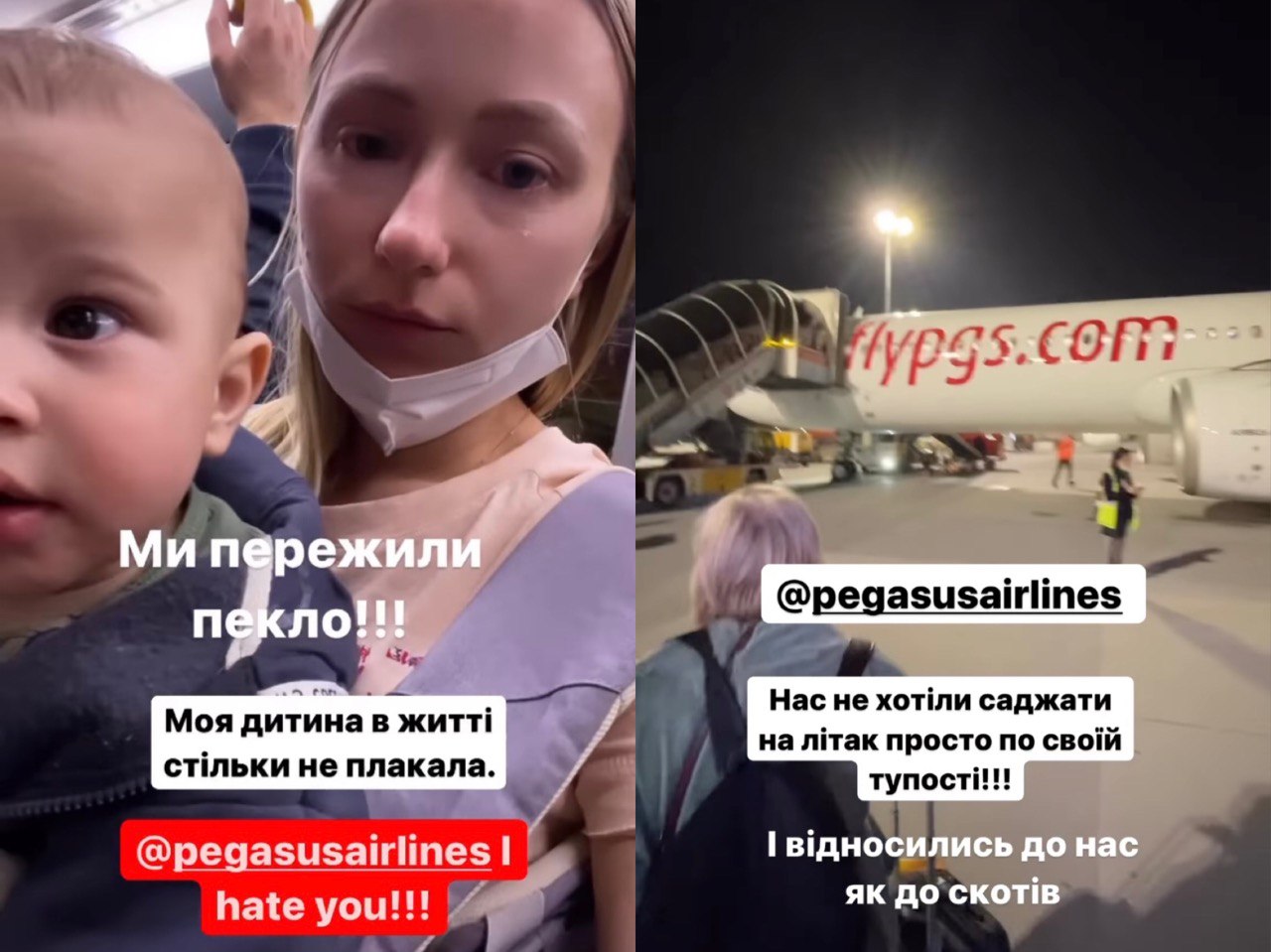 "Мы пережили ад! Мой ребенок в жизни столько не плакал. Нас не хотели сажать на самолет по своей тупости. И относились к нам как к скотам", - написала она.