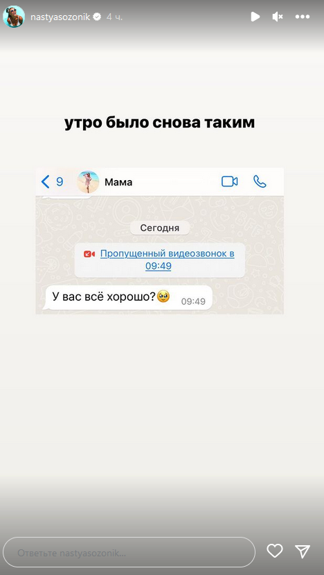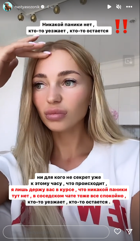 Следующую "сториз" Созоник записала для "тех, кто волнуется и переживает".
