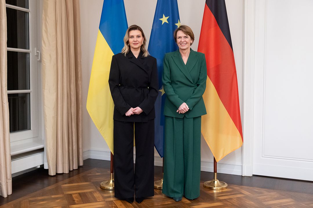 Во время встречи с первой леди Германии Елена Зеленская поблагодарила Эльке Бюденбендер за поддержку, которую ее страна оказывает Украине, в частности, за участие в коалиции по возвращению украинских детей, похищенных Россией.