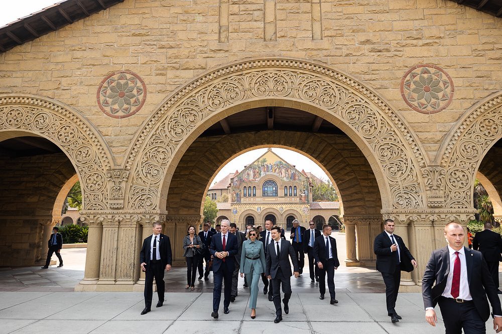 Владимир Зеленский в рамках рабочего визита в США посетил Стэнфордский университет (Калифорния). Сопровождала президента Украины его стильная супруга Елена Зеленская.