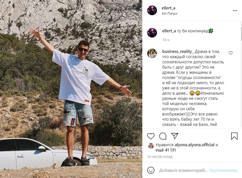 Где именно сейчас находится Мишина с сыном Платоном, не известно. В тоже время Эллерт поделился в соцсети снимками и короткими видео из Ялты. Вскоре после этого в профиле юмориста также появился снимок у подножья горы Ай-Петри с интригующим комментарием "ту би континуед". Судя по всему, история пары имеет шансы на продолжение.
