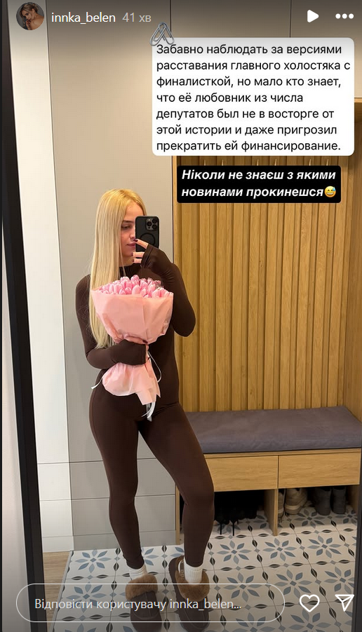 Победительница "Холостяка" сделала скриншот комментария и опубликовала его у себя в "сториз". "Никогда не знаешь, с какими новостями проснешься", - посмеялась Инна.