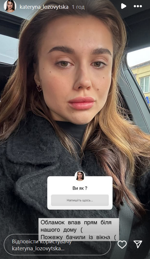 Об этом модель, которая недавно вернулась в Украину из Польши, рассказала у себя в Instagram-историях. "Обломок упал прямо возле нашего дома. Пожар видели из окна", - призналась Катя.
