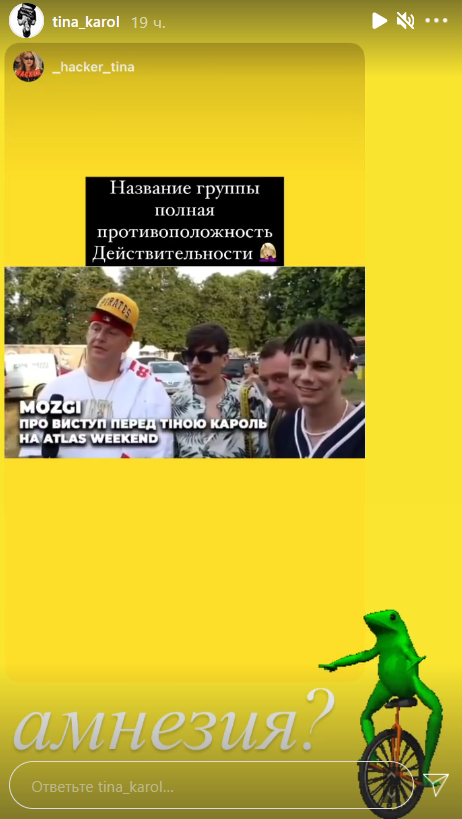 Очевидно, музыканты таким образом решили пошутить, но их юмор не оценили. Не понравилась шутка и самой певице. "Амнезия?", - написала она в "сториз".