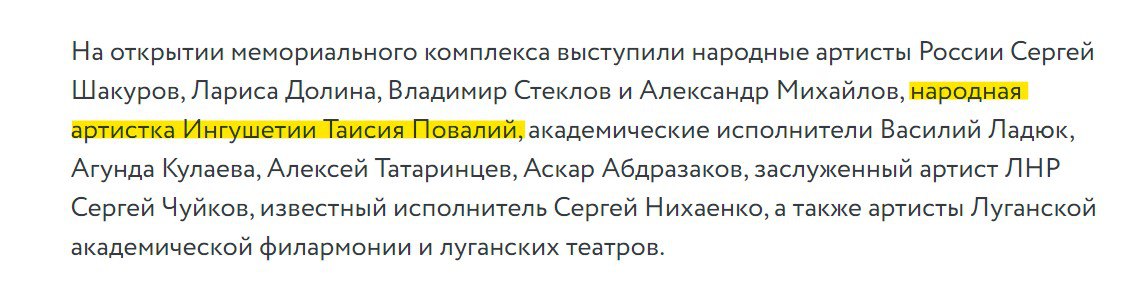 Повалий лишили звания Народной артистки Украины, и теперь российские СМИ и издания так называемой ЛНР представляют уроженку Киевщины как "народную артистку Ингушетии" - одного из субъектов РФ на Кавказе.