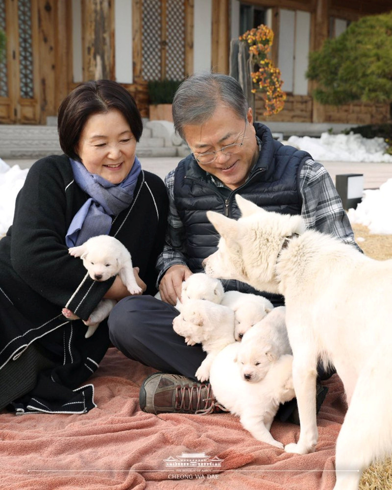 У Мун Чжэ Ина с женой есть несколько домашних собак, одну из которых он спас сразу после вступления в должность в 2017 году.