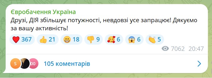 "Друзья, "Дія" увеличивает мощности, вскоре все заработает! Спасибо за вашу активность", - говорится в заявлении вещателя.