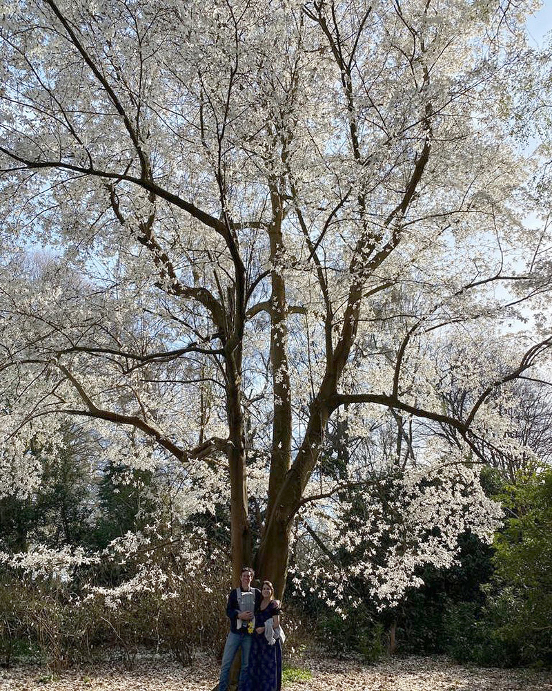 Внучка королевы Елизаветы поделилась в Instagram вдохновляющим весенним фото с мужем и маленьким сыном. На снимке принцесса Евгения стоит под большим цветущим деревом в обнимку с Джеком Бруксбэнком, а тот бережно держит на груди двухмесячного Августа.