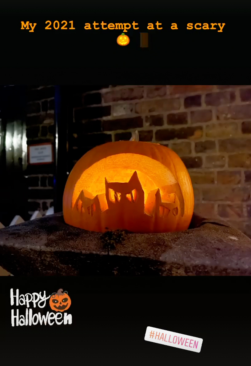В Instagram-историях 31-летняя Евгения поделилась еще одной фотографией сына, ползающего по ковру. "По крайней мере, мой маленький хеллоуинский монстр страшный", - пошутила она, показав также неудачную попытку вырезать к празднику пугающую тыкву.