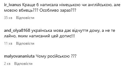 Ответ певицы подписчиков не убедил. "А я уважаю людей, которые переходят на украинский язык во время войны. И особенно когда это касается общественных личностей. Что-то, что вы меня разочаровали этим постом", - написала подписчица.