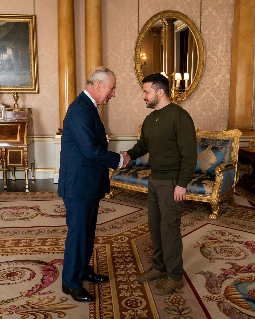 Его Величество приветствует президента Зеленского в Букингемском дворце в 2023 году