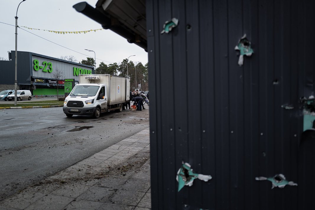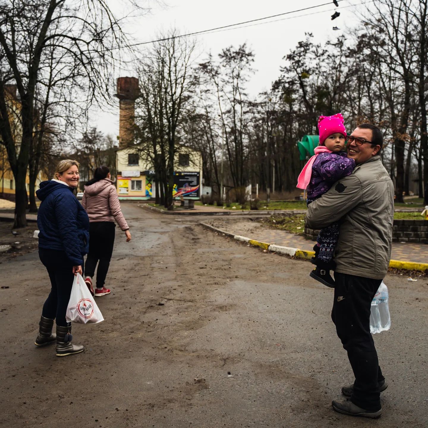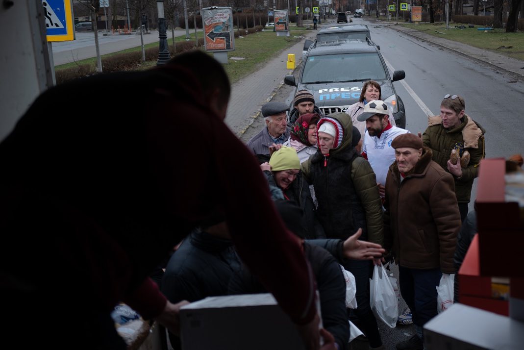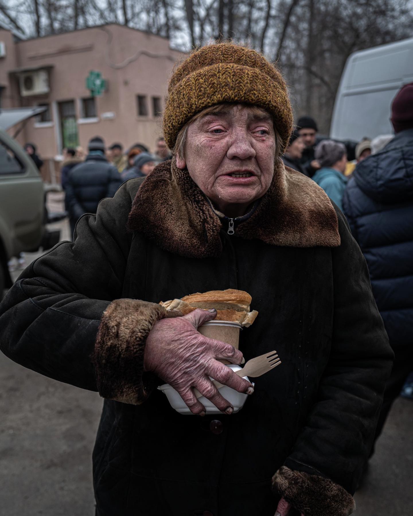 После Львова и Киева Фукунага отправился в Ирпень и Бучу. По словам режиссера, он был там еще 1 апреля, и сфотографировал выживших людей, которые получают гуманитарную помощь.