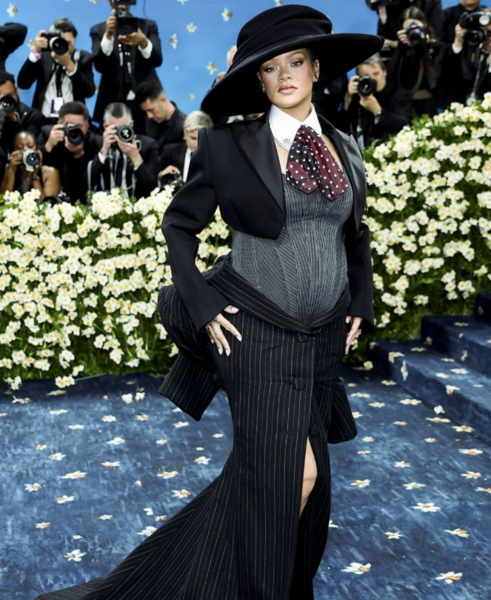 Отметим, что во время мероприятия певица Рианна поразила не только своим костюмом, но и третьей беременностью.