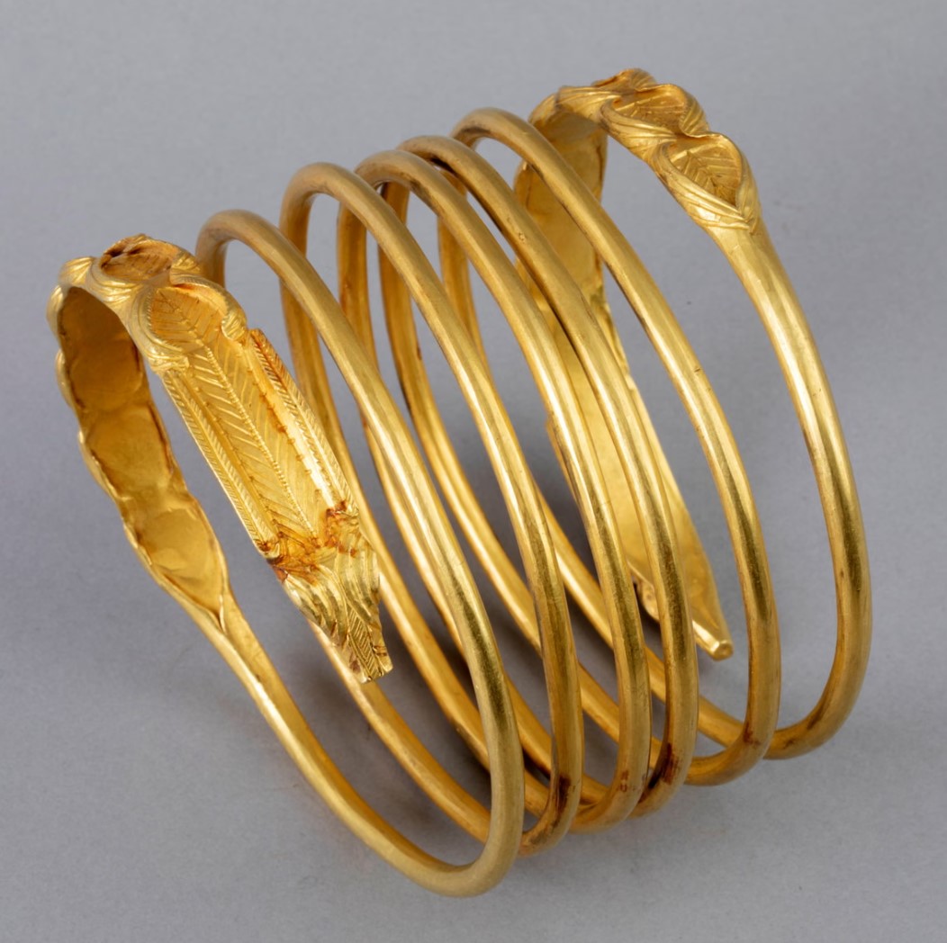 Вместе со шлемом они вынесли еще три золотых браслета дакийского периода.