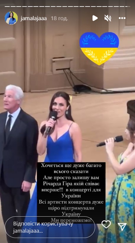 В instagram-stories артистка опубликовала серию снимков и видео. Так, на фото можно увидеть Ричарда Гира. Голливудский актер поддерживает Украину не только словами, но и действиями. Он продал на аукционе раритетный автомобиль и передал полученные средства благотворительным фондам, которые помогают Украине. Знаменитость получил за кабриолет Jaguar XK8 31,7 тыс. долларов (938 тыс. грн.).